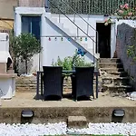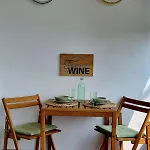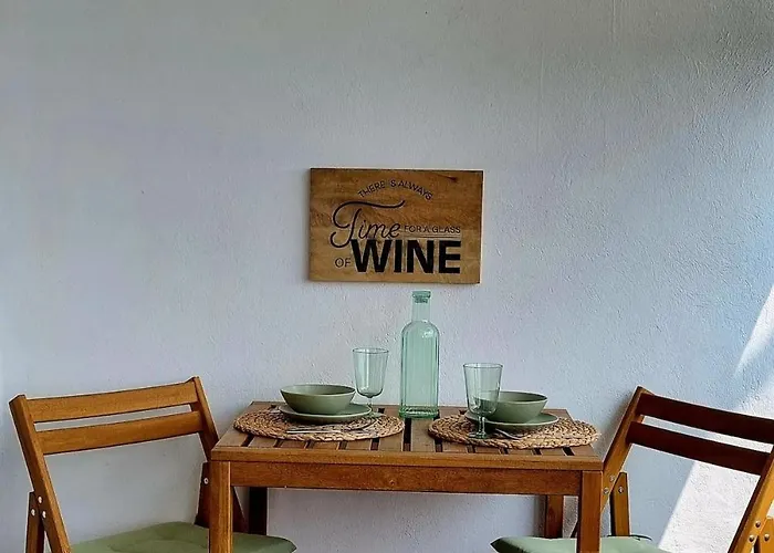 Dit appartement biedt voorzieningen voor het zelf koken, zoals een ingerichte kitchenette, en een eethoek buiten voor het gemak van de gasten.